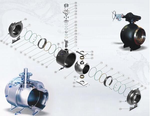 5、整體式全焊接,等徑及變徑通道,采用固定球及浮動球,雙活塞效應(yīng)密封系統(tǒng),自動注入密封劑式軸承。